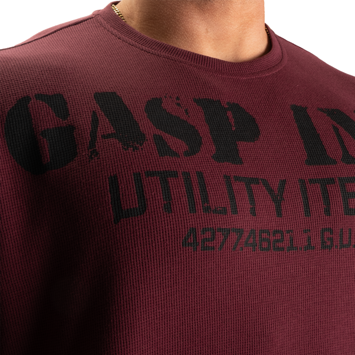 The Iron Thermal Tee er ikke din vanlige tee. Den kombinerer den overdimensjonerte passformen til vår populære Iron Tee med vårt verdsatte termiske stoff. Denne blandingen av bomull/polyester er pustende og lett, og med albuelengde ermer er Iron Thermal Tee ideell både som deksel og som et frittstående element. Med et brysttrykk inspirert av vår Thermal Gym-genser og et dristig trykk på ryggen som spenner fra skulder til skulder, gir denne t-skjorten et klart statement; Du er en del av GASP Iron World. Størrelse opp eller ned hvis du foretrekker en mer eller mindre oversized look.
